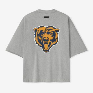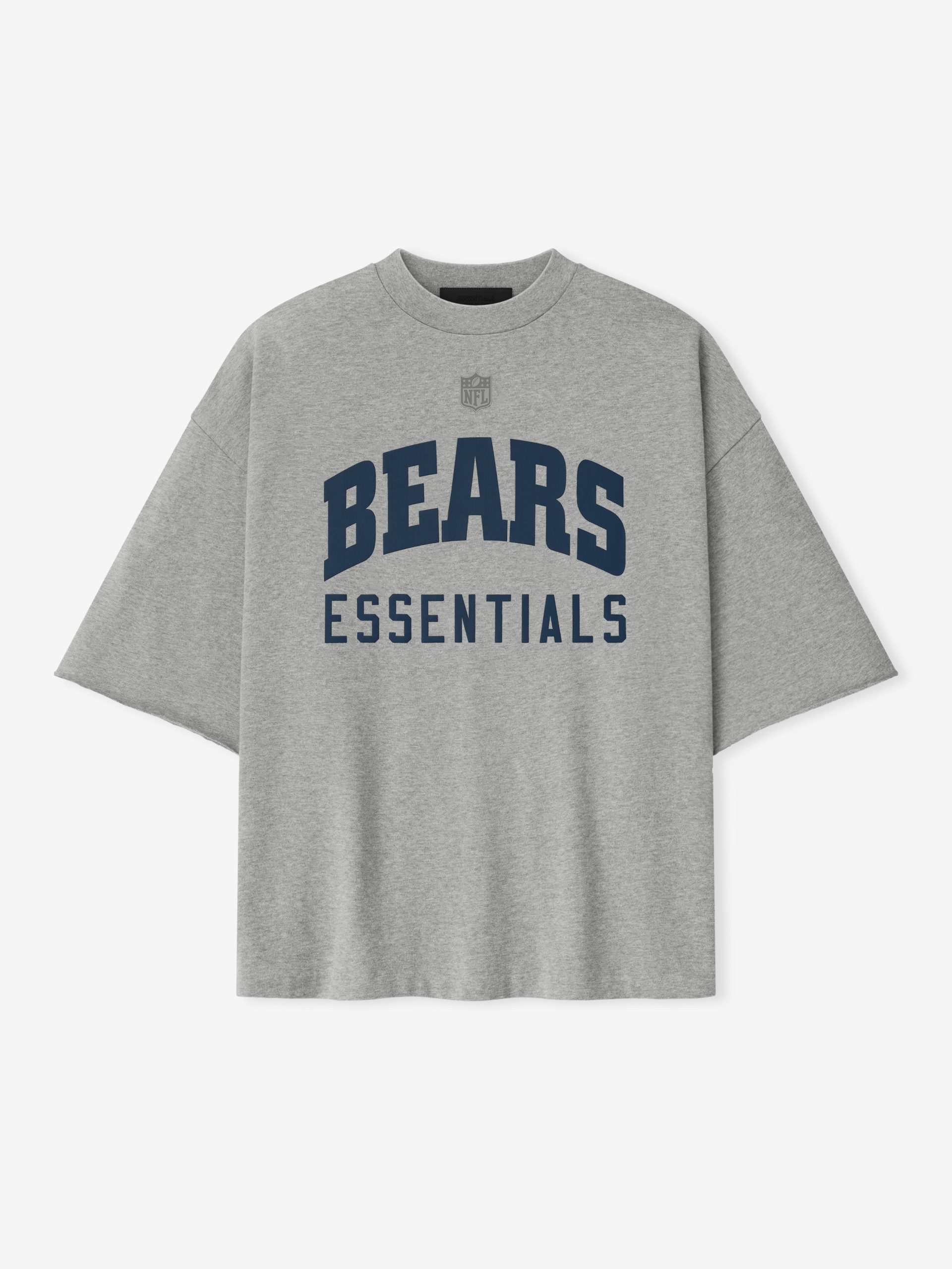 The Bears Sport 3/4 Sleeve Football Tee is crafted from heavy 100% cotton jersey and designed in an extra-oversized fit with proportions inspired by 90s throwback football jerseys. The front features a bold Bears Essentials puff-print graphic paired with the NFL shield. while the back displays the official Chicago Bears logo. Additional details include rib-knit collar. and 3/4 sleeves with raw hemline. The look is finished with the signature rubberized Fear of God Essentials label.