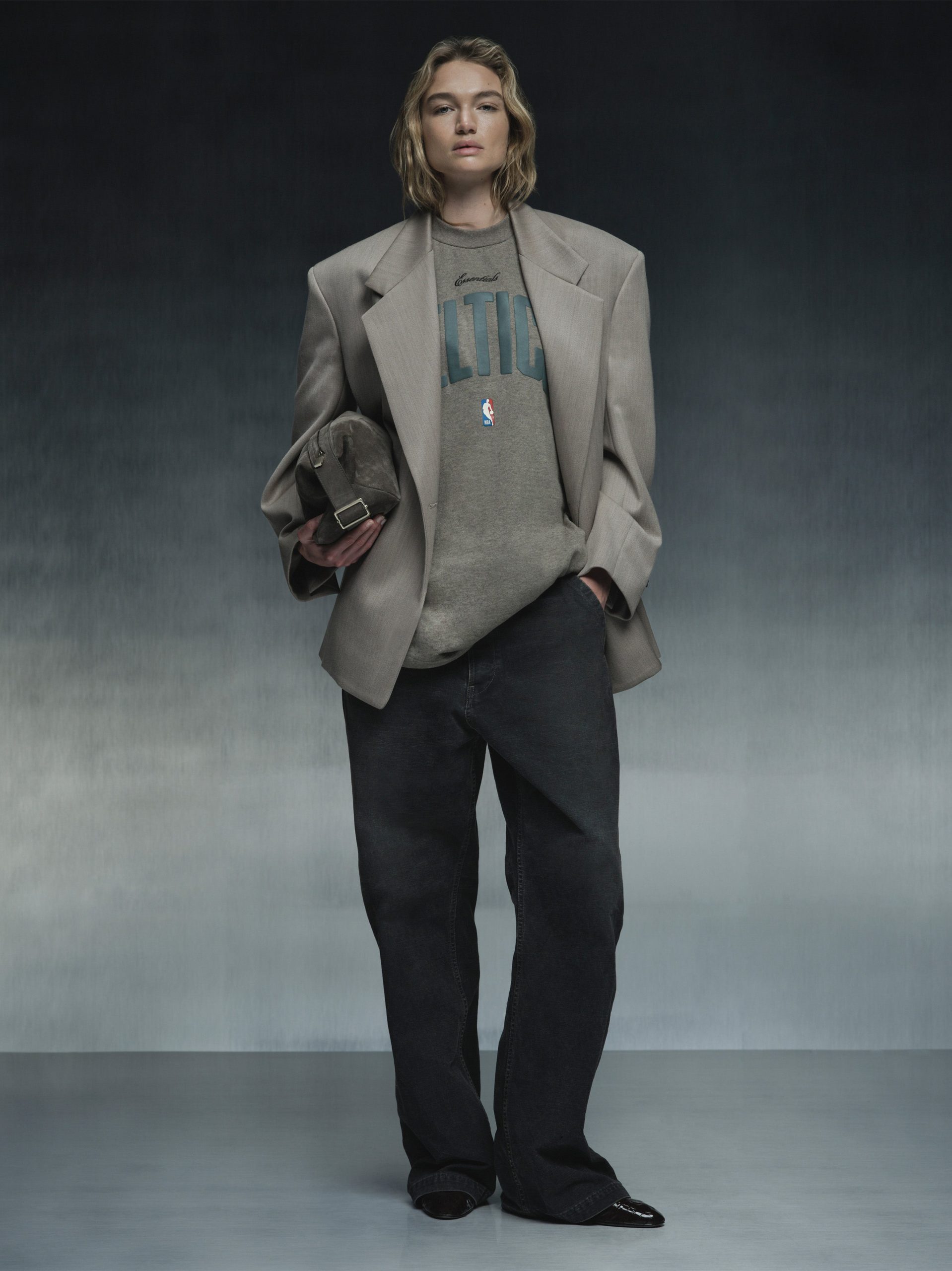 The Celtics 90s Tee is cut from 100% cotton heavy jersey. offering a soft yet substantial hand feel. Designed in an oversized 90s-inspired silhouette. it features exaggerated proportions with dropped shoulders for a relaxed drape. The front is defined by a puff-print application of the ESSENTIALS CELTICS lockup alongside the NBA insignia.. The signature rubberized Fear of God Essentials label at the collar.