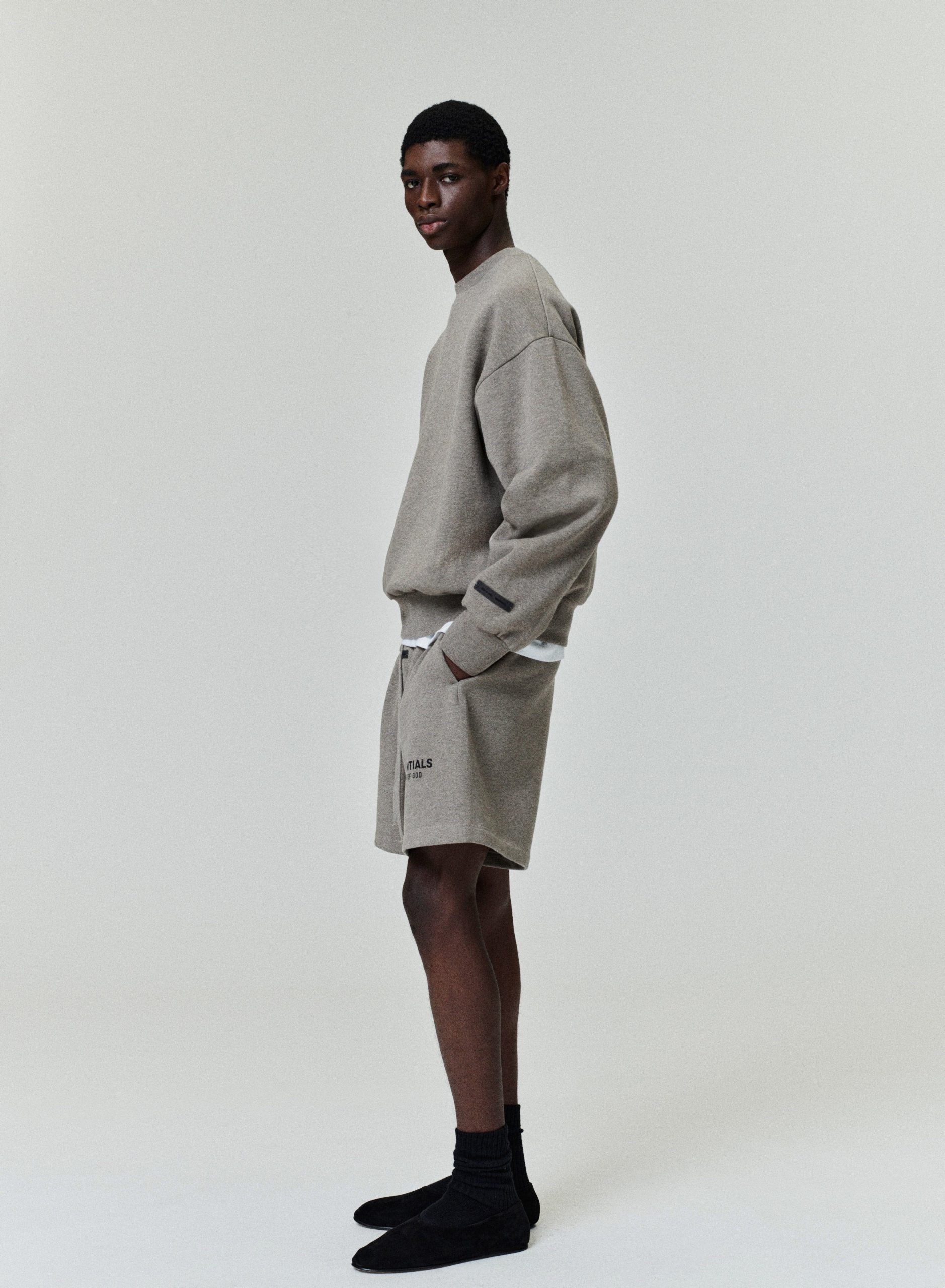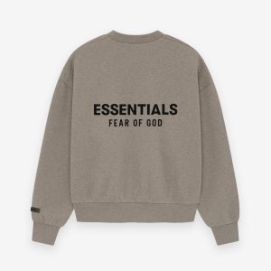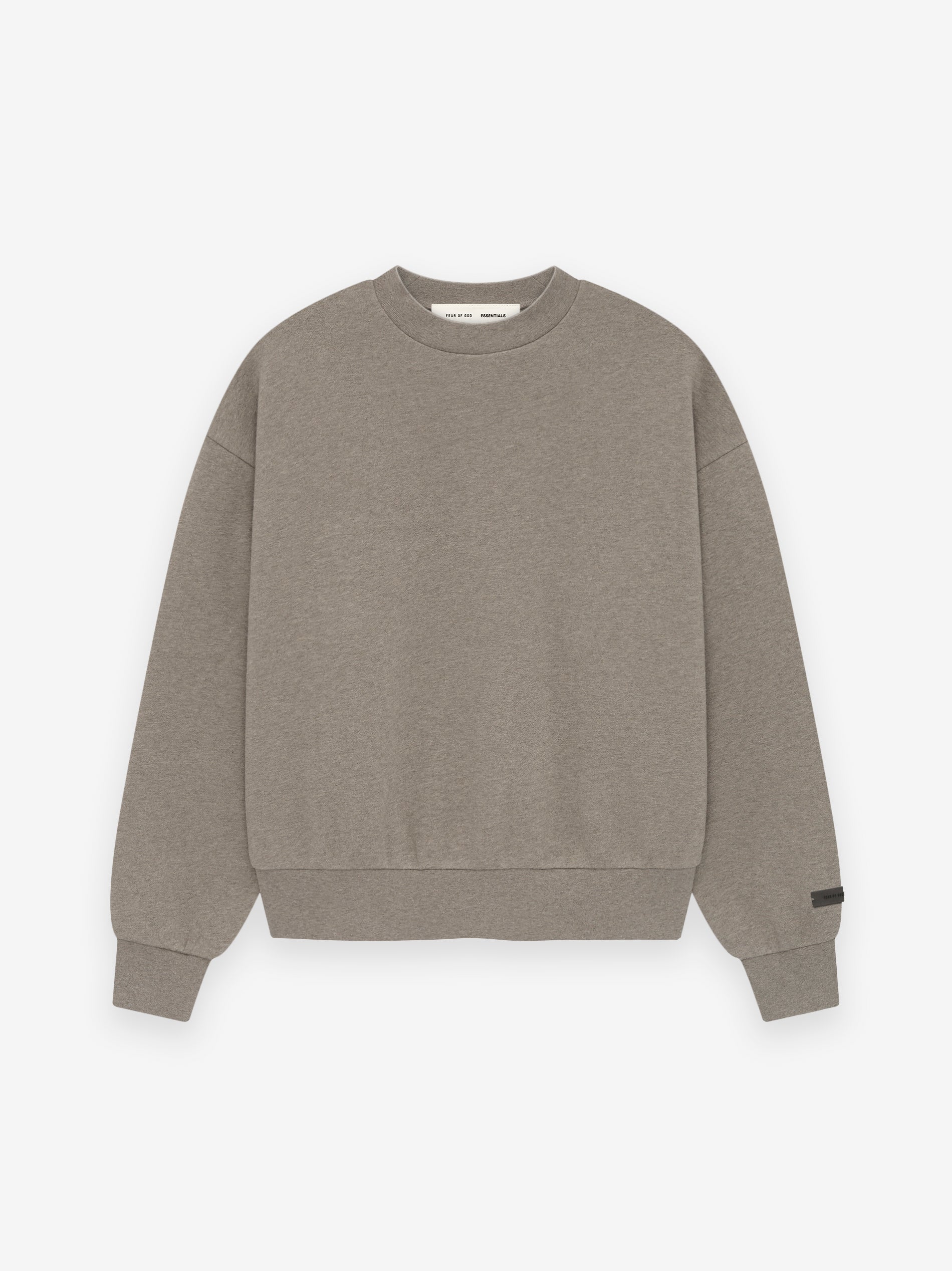 The Classic Crewneck Sweatshirt is made in heavy 380gsm core fleece to provide ideal comfort and structure. The signature Essentials Fear of God soft-touch logo is branded across the back. Details include a rib-knit collar. cuffs. and waist-hem. An updated Fear of God Essentials translucent rubberized label is stitched on the cuff.