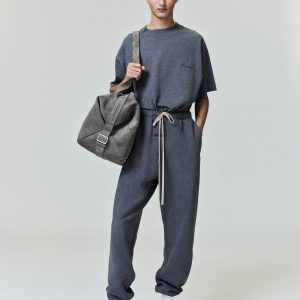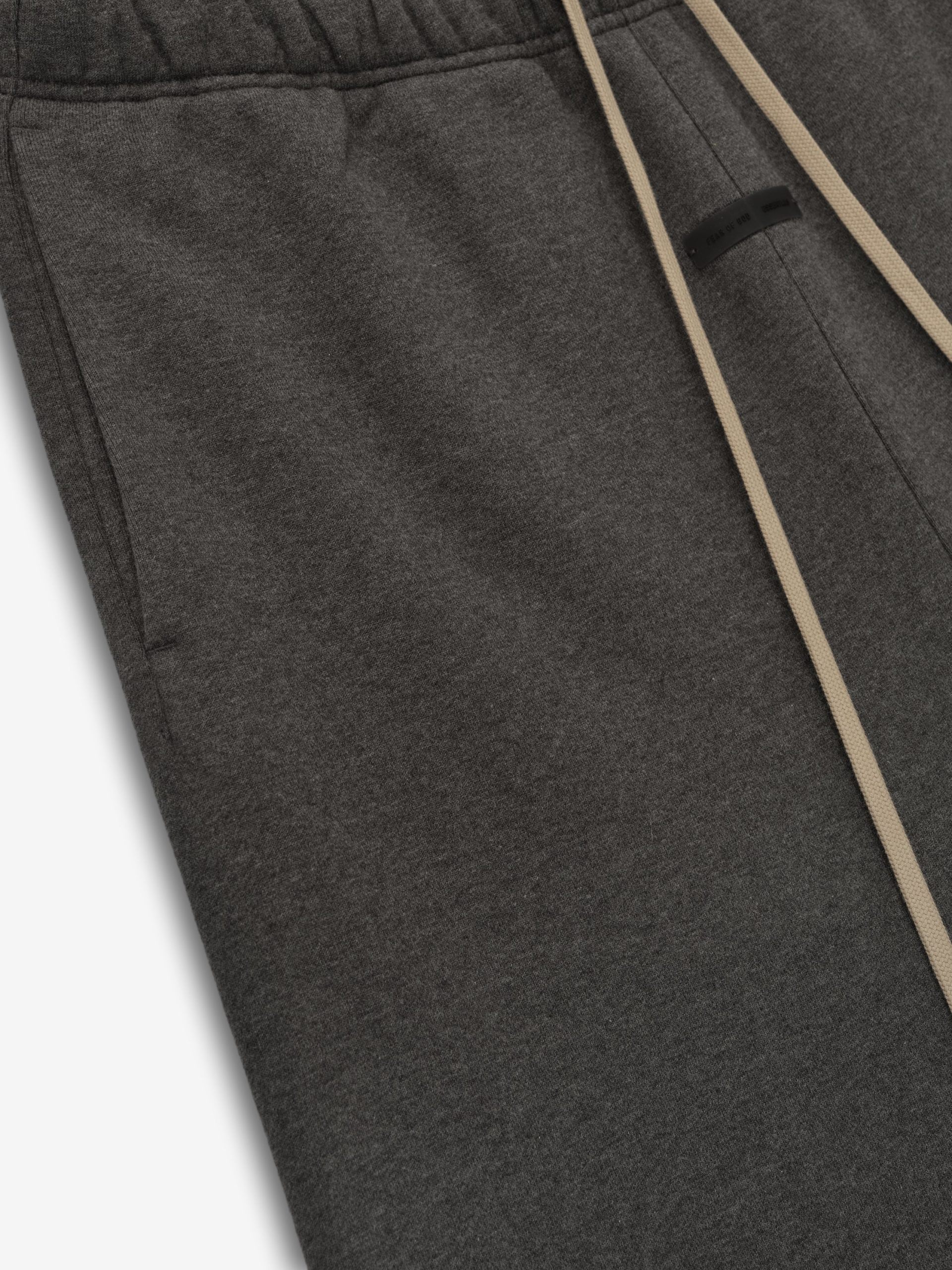 The Classic Sweatpant is crafted from 480gsm core fleece. Its relaxed silhouette tapers into an elastic hem. Completing the design are an encased elastic waistband with elongated drawcords. side seam pockets. and a Fear of God Essentials rubberized label stitched at the center front.