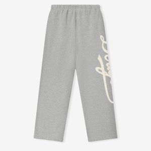 The Dodgers Lounge Sweatpant is constructed from a heavy 480gsm fleece and designed with a voluminous. wide-leg fit. Branding features a bold Dodgers HD-printed logo down one leg. complemented by a Los Angeles x Essentials script lockup on the other. Functional details include an elastic waistband with elongated drawstrings and side pockets. The look is finished with the Essentials Fear of God black bar at the center front.
