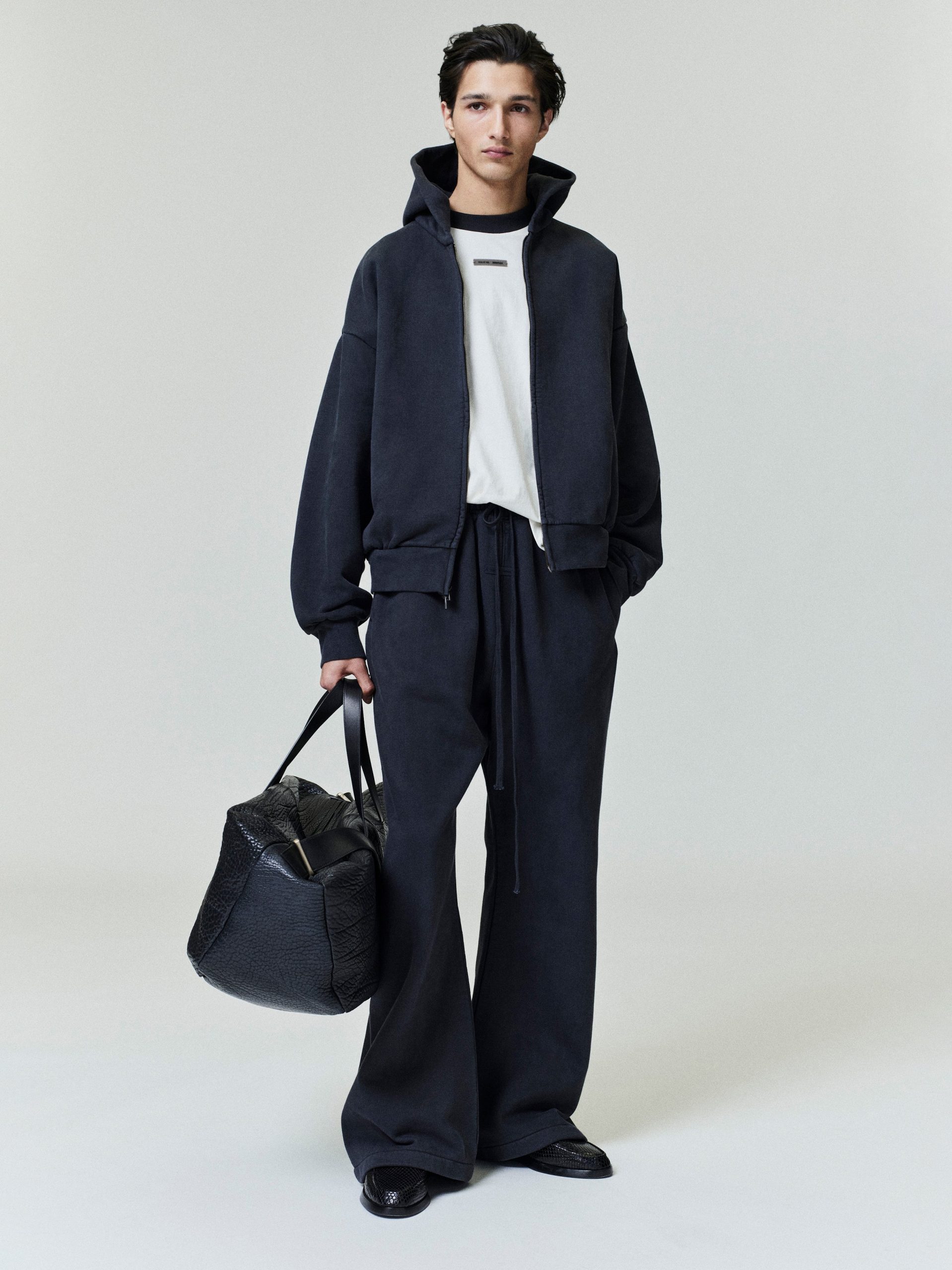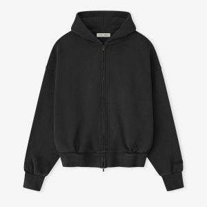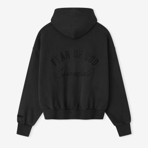 The Classic Fleece Full Zip Hoodie is crafted from 520gsm heavy fleece and treated with a pigment dye to create rich depth of color. Its classic silhouette is defined by an embroidered Fear of God Essentials logo on the back. Details include side pockets. rib-knit cuffs. and waist-hem. A Fear of God Essentials rubberized label stitched at the back collar.