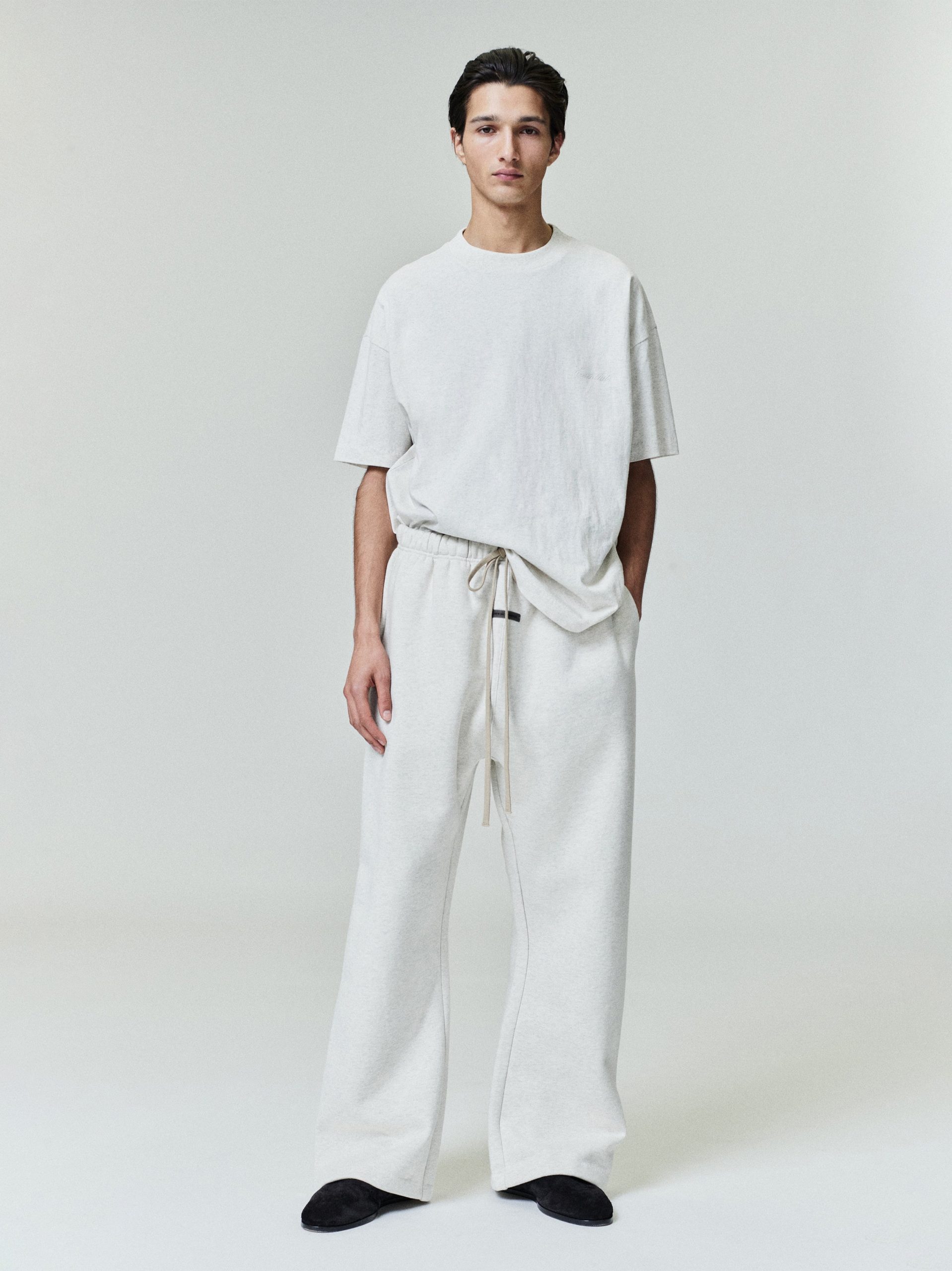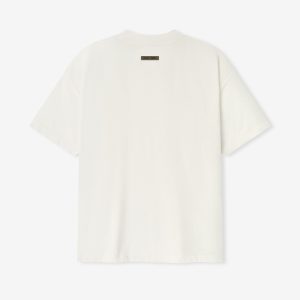The Essential Tee is made from lightweight 60% cotton. 40% polyester jersey. The rib-knit crewneck tee features a vintage fit to shape more closely to the body with shorter sleeves. Branding includes an embroidered Essentials script logo on front and the Fear of God Essentials label at the back collar.