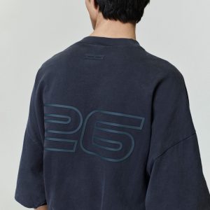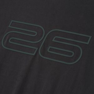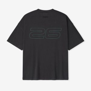 The 90s Tee is cut from 100% cotton jersey. offering a soft yet substantial hand feel. Designed in an oversized 90s-inspired silhouette. it features exaggerated proportions with dropped shoulders for a relaxed drape. The front is defined by a matte HD print application of the Fear of God Essentials lockup. and the back receives a 26 graphic. The signature rubberized Fear of God Essentials label at the collar.