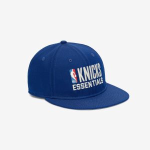 The Fear of God Essentials New York Knicks 9Fifty RC Snapback Cap features a Knicks Essentials lockup alongside the official NBA logo. The 9Fifty RC or Retro Crown is designed for a more vintage. casual feel. Additional features include an embroidered New Era logo on the side and an adjustable snapback closure at the rear.