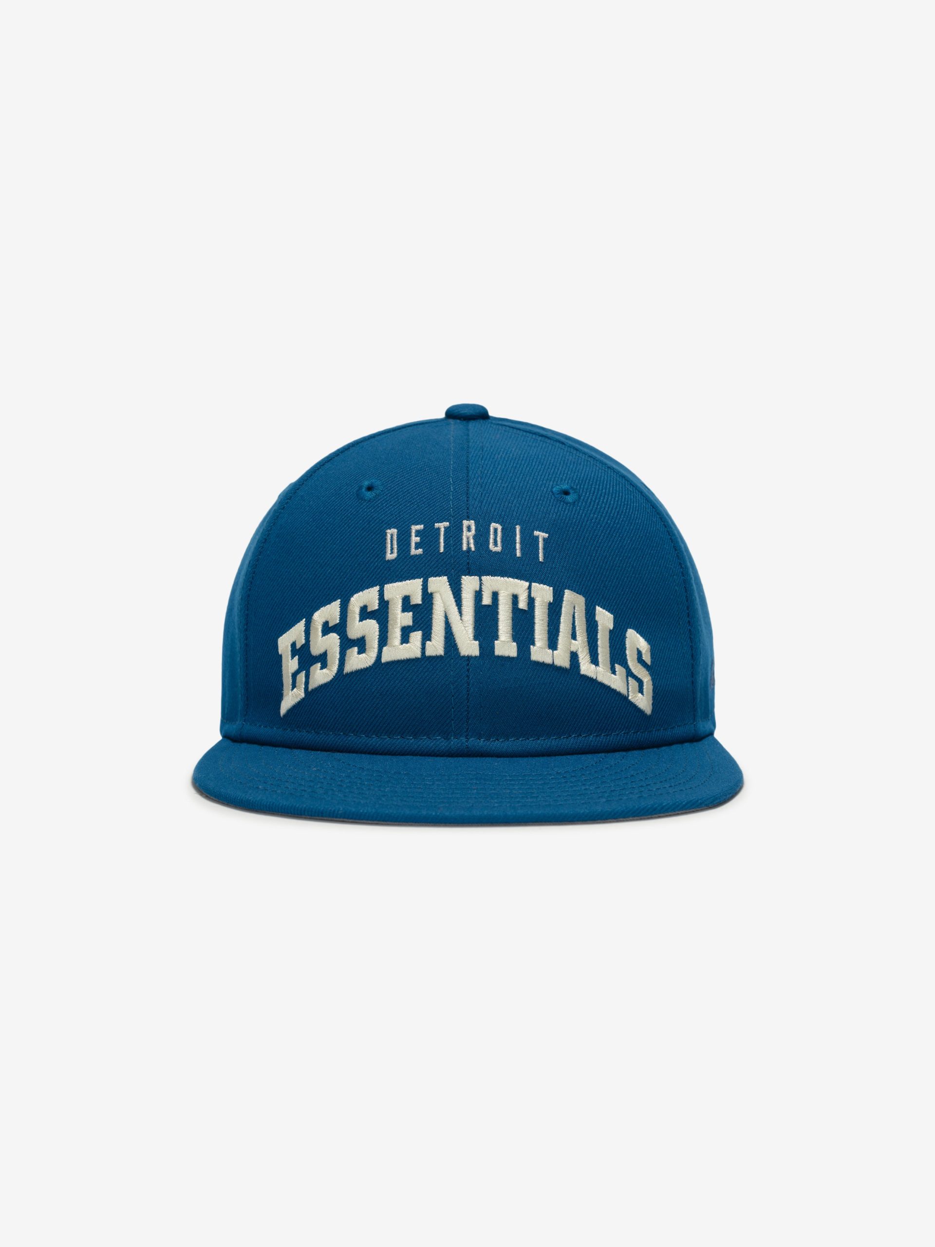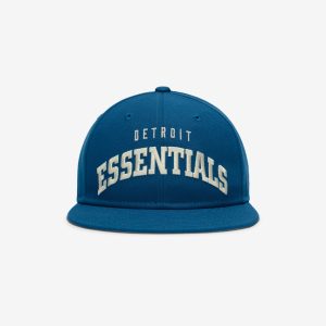 The Fear of God Essentials Lions 9Fifty RC Snapback Cap features a Detroit Essentials lockup. complemented by the official Detroit Lions logo at the back. The 9Fifty RC or Retro Crown is designed for a more vintage. casual feel. Additional features include an embroidered New Era logo on the side and an adjustable snapback closure at the rear.
