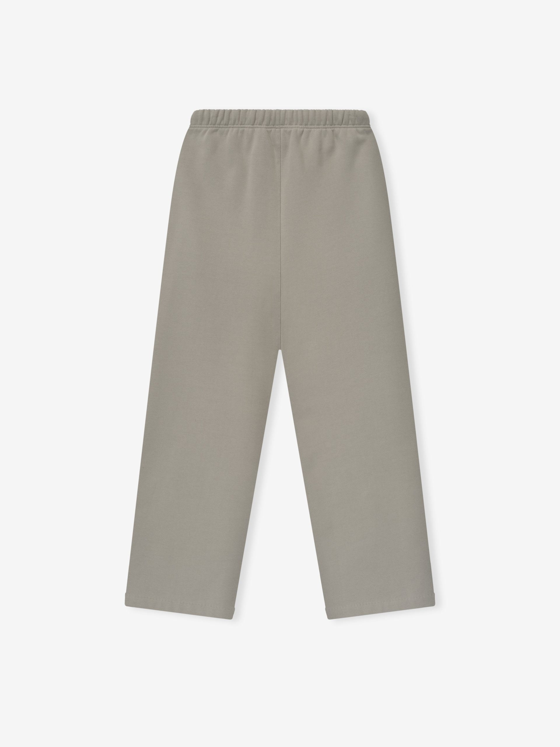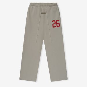The Lounge Sweatpant is crafted from core fleece and treated with a vintage wash. Its voluminous wide-leg silhouette is defined by a 26 HD print graphic on the leg. Finishing details include an encased elastic waistband with elongated drawcords. side seam pockets. and a Fear of God Essentials rubberized label stitched at the center front.