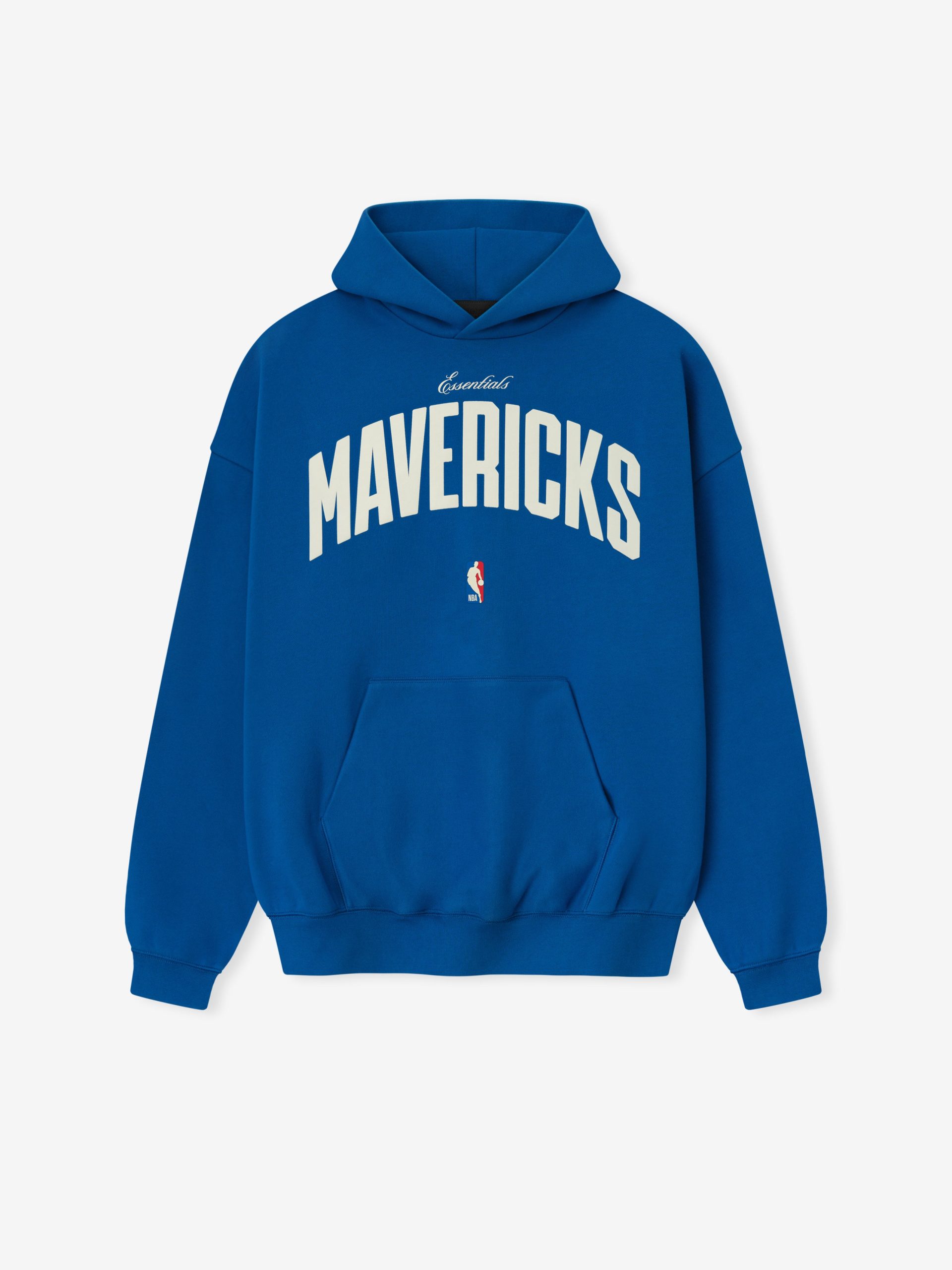 The Mavericks 90s Sport Hoodie is crafted from core fleece. offering an elevated balance of softness. structure. and lasting comfort. Cut in a relaxed sport fit. it drapes with more ease through the body and extended length compared to the Essentials classic silhouette. The front features a bold puff-print graphic Essentials Mavericks alongside the authentic NBA logo. Additional features a kangaroo pocket. rib-knit at the cuffs and waist hem. The signature rubberized Fear of God Essentials label accents the hood.