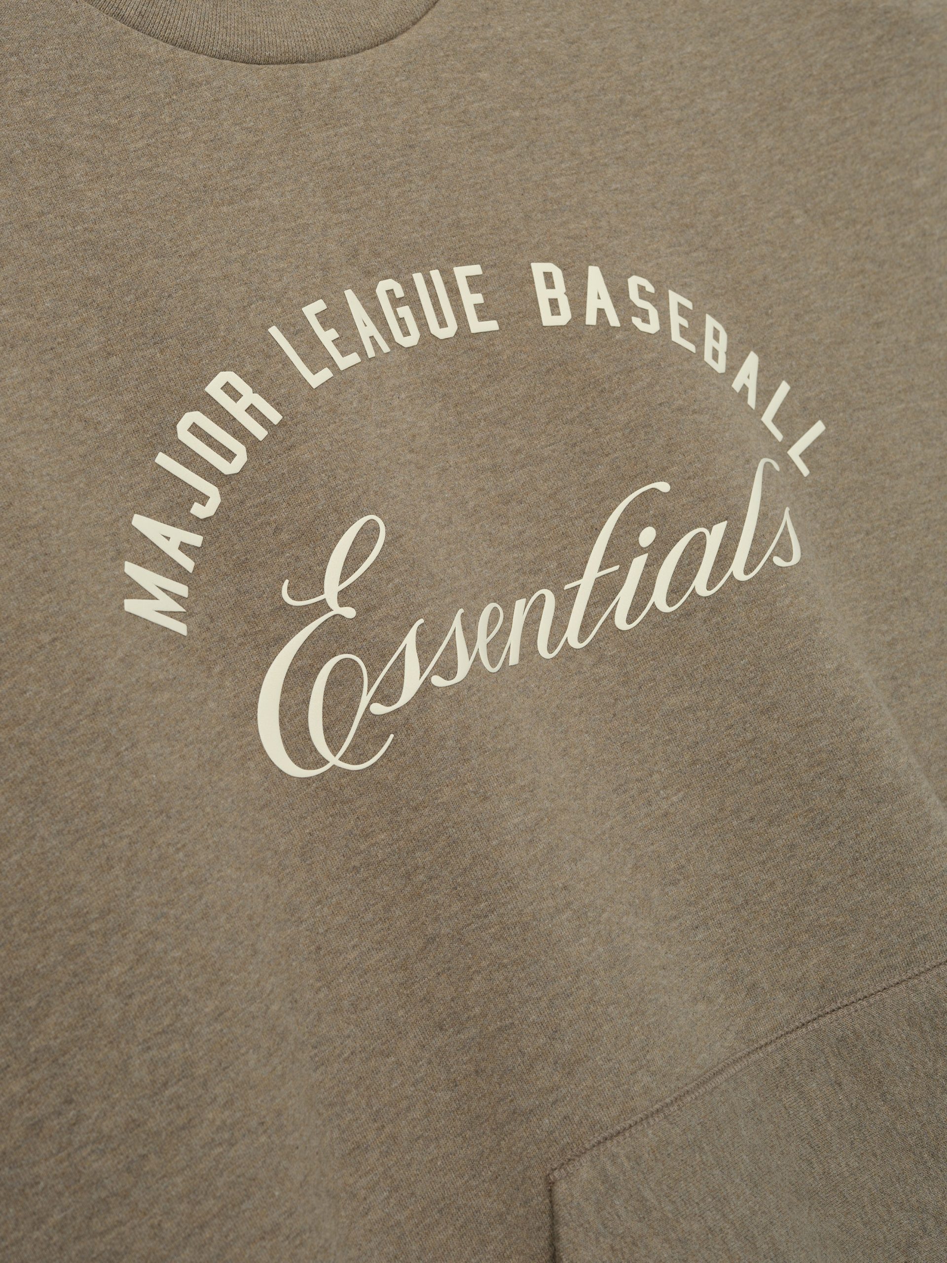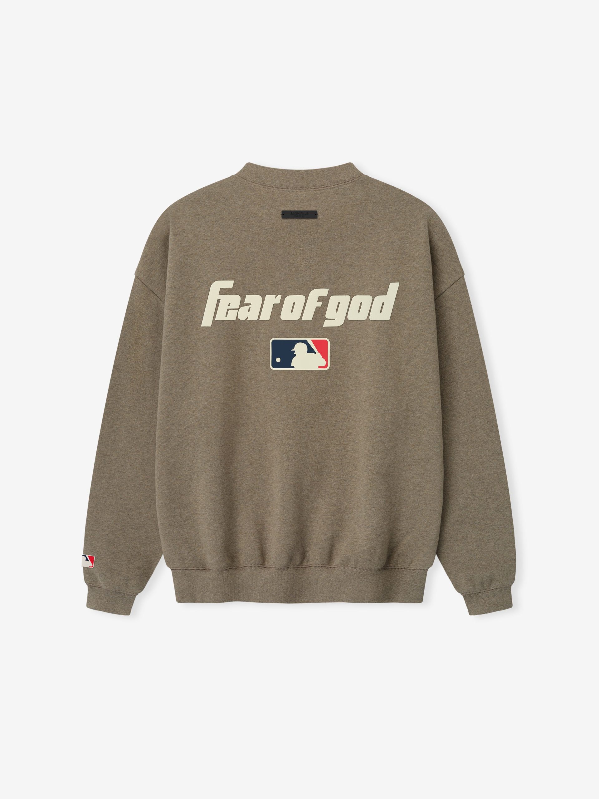The MLB Sport Crewneck is crafted from a heavy 480gsm fleece. offering an elevated balance of softness. structure. and lasting comfort. Designed in a relaxed Sport fit. the front features a Major League Baseball Essentials script lockup. while the back showcases an HD-printed MLB emblem. Additional details include a kangaroo pocket. and rib-knit collar. cuffs and waist hem. The look is finished with the signature Fear of God Essentials label at the back collar.