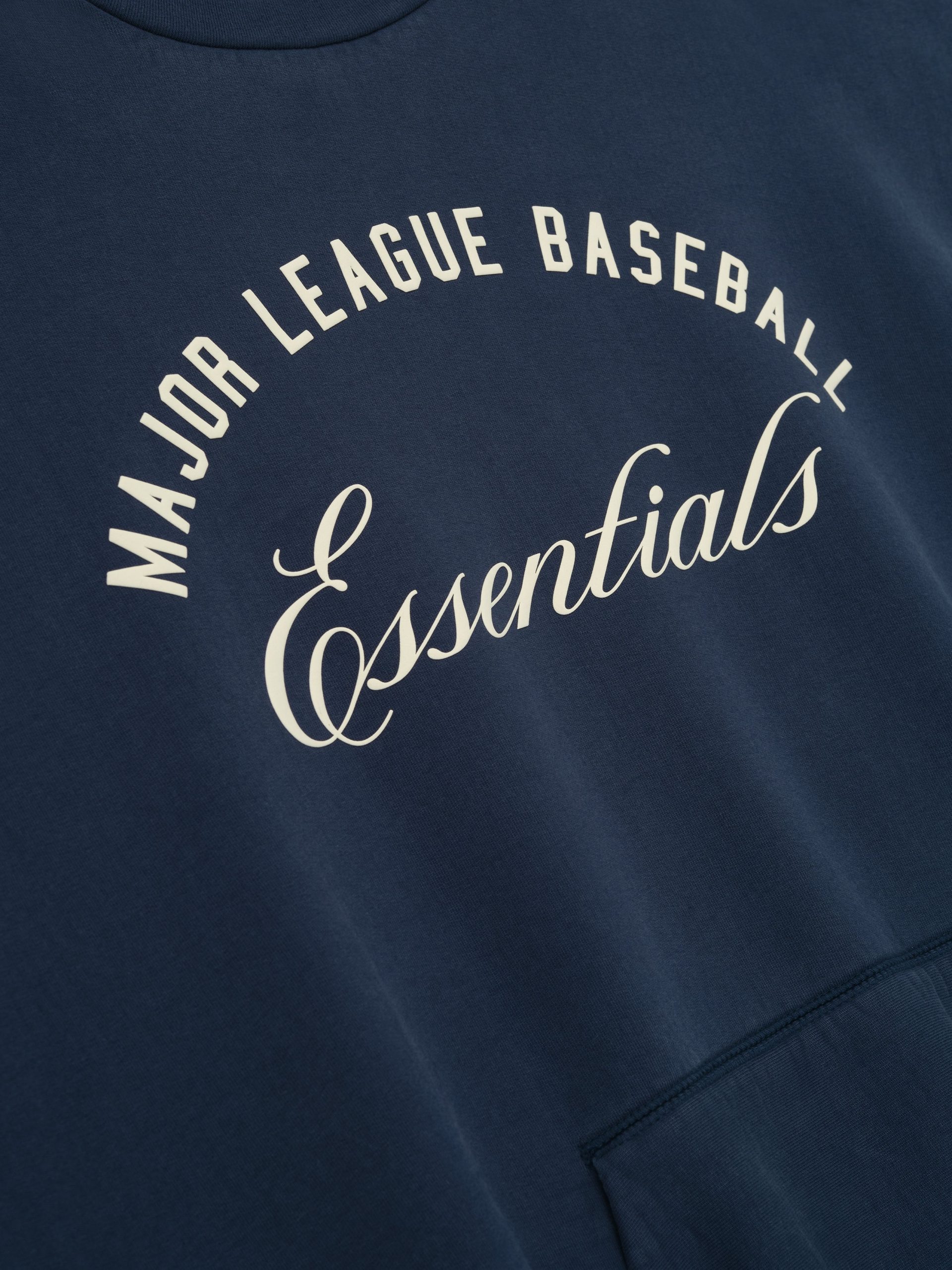 The MLB Sport Crewneck is crafted from pigment-dyed. heavyweight 520gsm cotton fleece. delivering a faded vintage feel and a sense of sports nostalgia. Designed in a relaxed Sport fit. the front features a Major League Baseball Essentials script lockup. while the back showcases an HD-printed MLB emblem. Additional details include a kangaroo pocket. and rib-knit collar. cuffs and waist hem. The look is finished with the signature Fear of God Essentials label at the back collar.