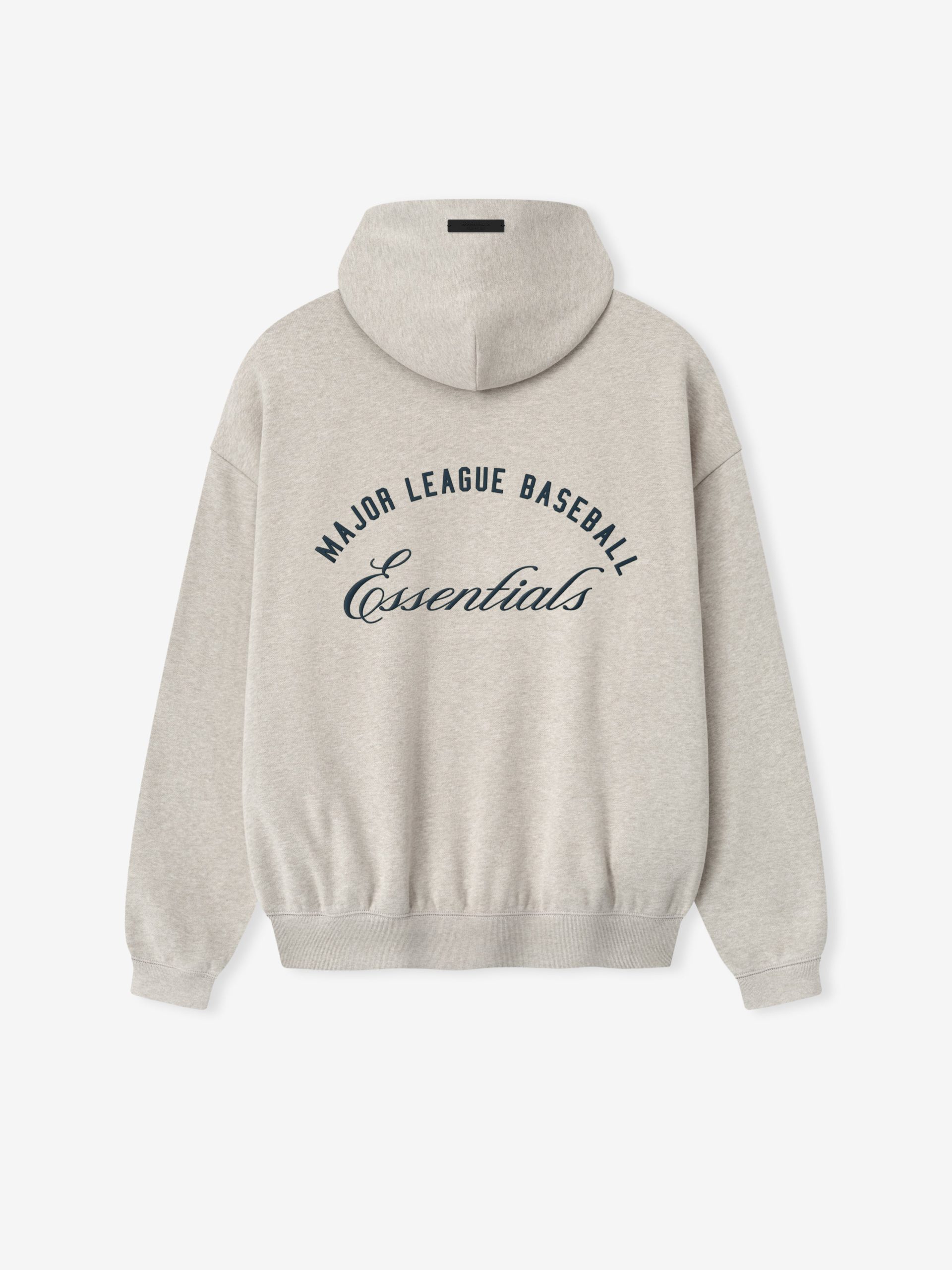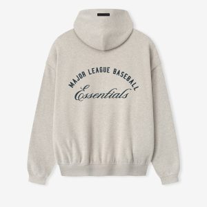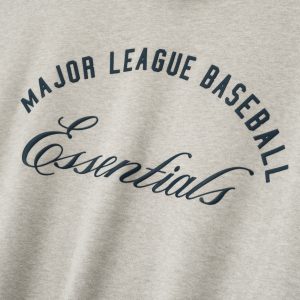The MLB Sport Hoodie is crafted from pigment-dyed. heavyweight 520gsm fleece. offering rich color depth and soft comfort. Designed in a relaxed Sport fit. the front features a Major League Baseball Essentials script lockup. while the back showcases an HD-printed Fear of God x MLB emblem. Additional details include a side pockets. and rib-knit cuffs and waist hem. The look is finished with the signature rubberized Fear of God Essentials label at the hood.