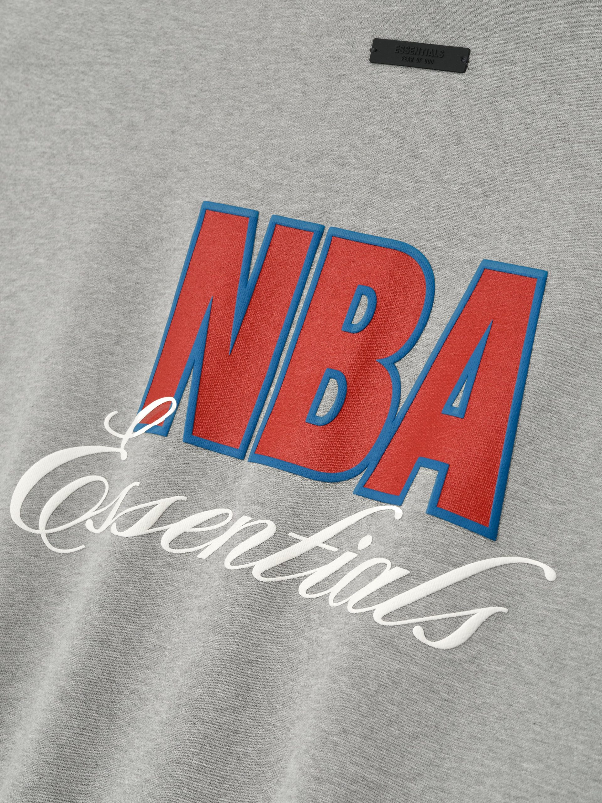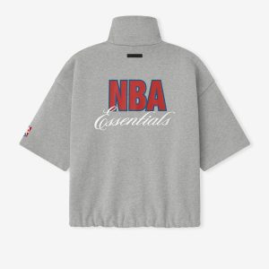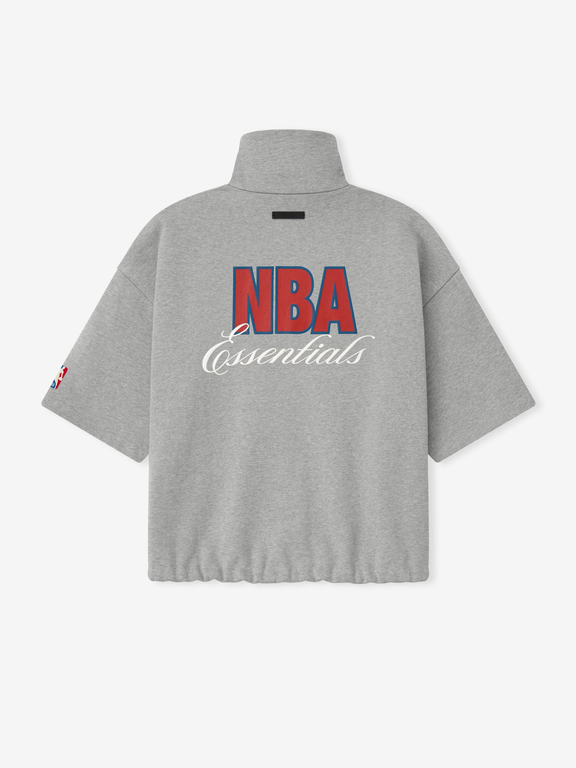 The NBA High Neck Jacket is crafted from a core fleece and designed with 3/4 sleeves and an oversized fit for comfort and movement. The back is detailed with an NBA ESSENTIALS lockup. while the sleeve receives the iconic NBA emblem. Functional elements include a full zip closure into a high neck. A Fear of God ESSENTIALS rubberized label accents the back collar.
