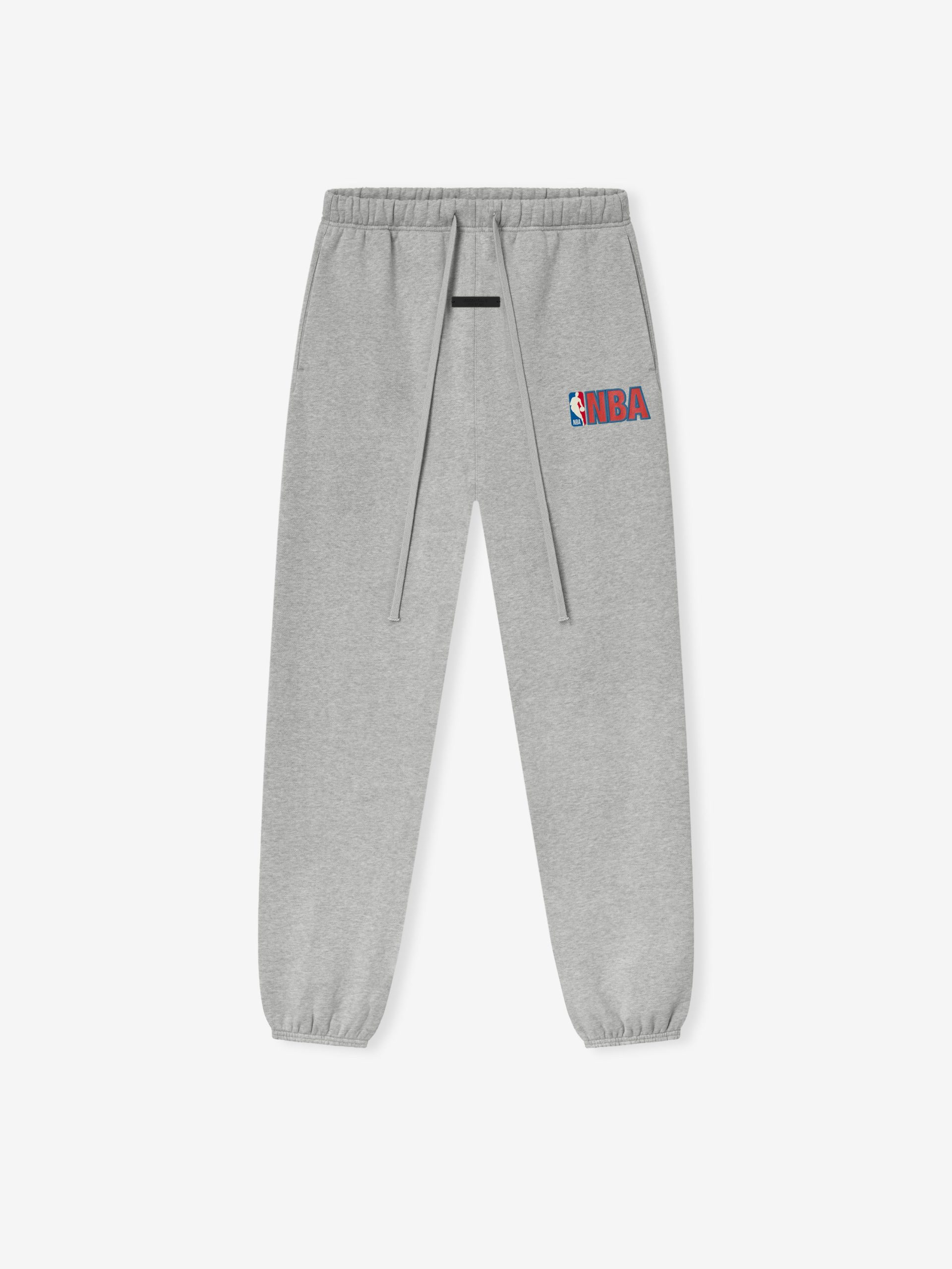 The NBA Classic Sweatpant is crafted from 480gsm heavy core fleece. offering both structure and body to its signature. relaxed leg that tapers into a elastic cuff. The leg features NBA ESSENTIALS puff-print lockup paired with the official NBA logo. Finishing details include an encased elastic waistband with elongated drawcords. side seam pockets. and a Fear of God Essentials rubberized label stitched at the center front.