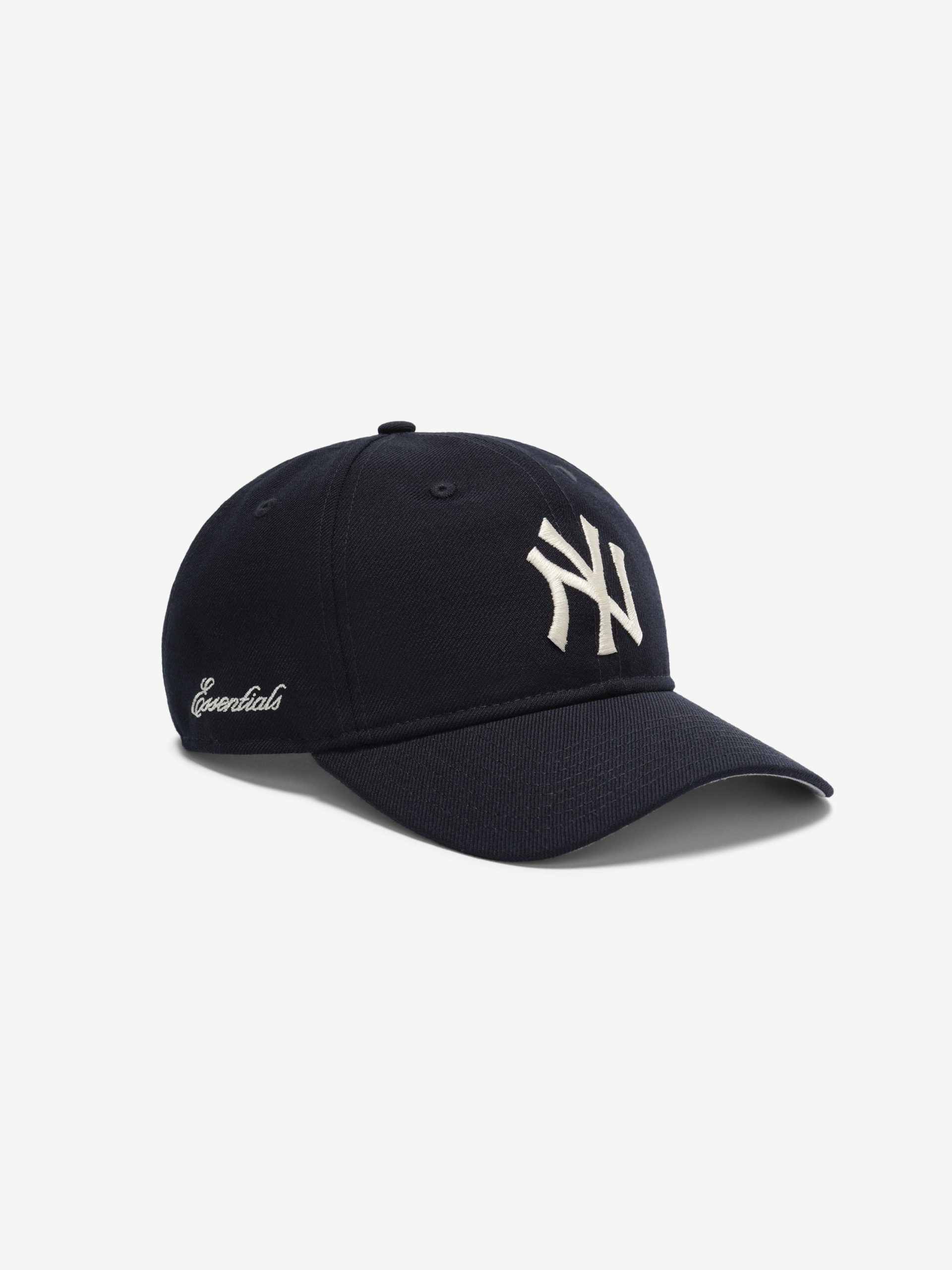 The Fear of God Essentials New York Yankees 9Forty adjustable cap features an embroidered Yankees logo at the front and a Fear of God label on the adjustable strap at the back.