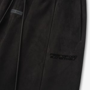 The Flare Sweatpant is crafted from bonded suede fleece. offering a plush. suede-like hand feel that complements its flared-leg silhouette. The leg is detailed with an HD-printed Fear of God Essentials lockup. while finishing touches include an encased elastic waistband with elongated drawcords. side seam pockets. and a Fear of God Essentials rubberized label stitched at the center front.