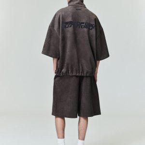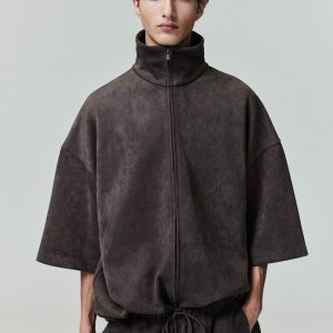 Suede Fleece High Neck 3/4 Sleeve Jacket