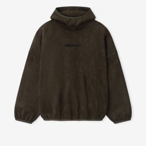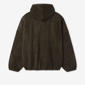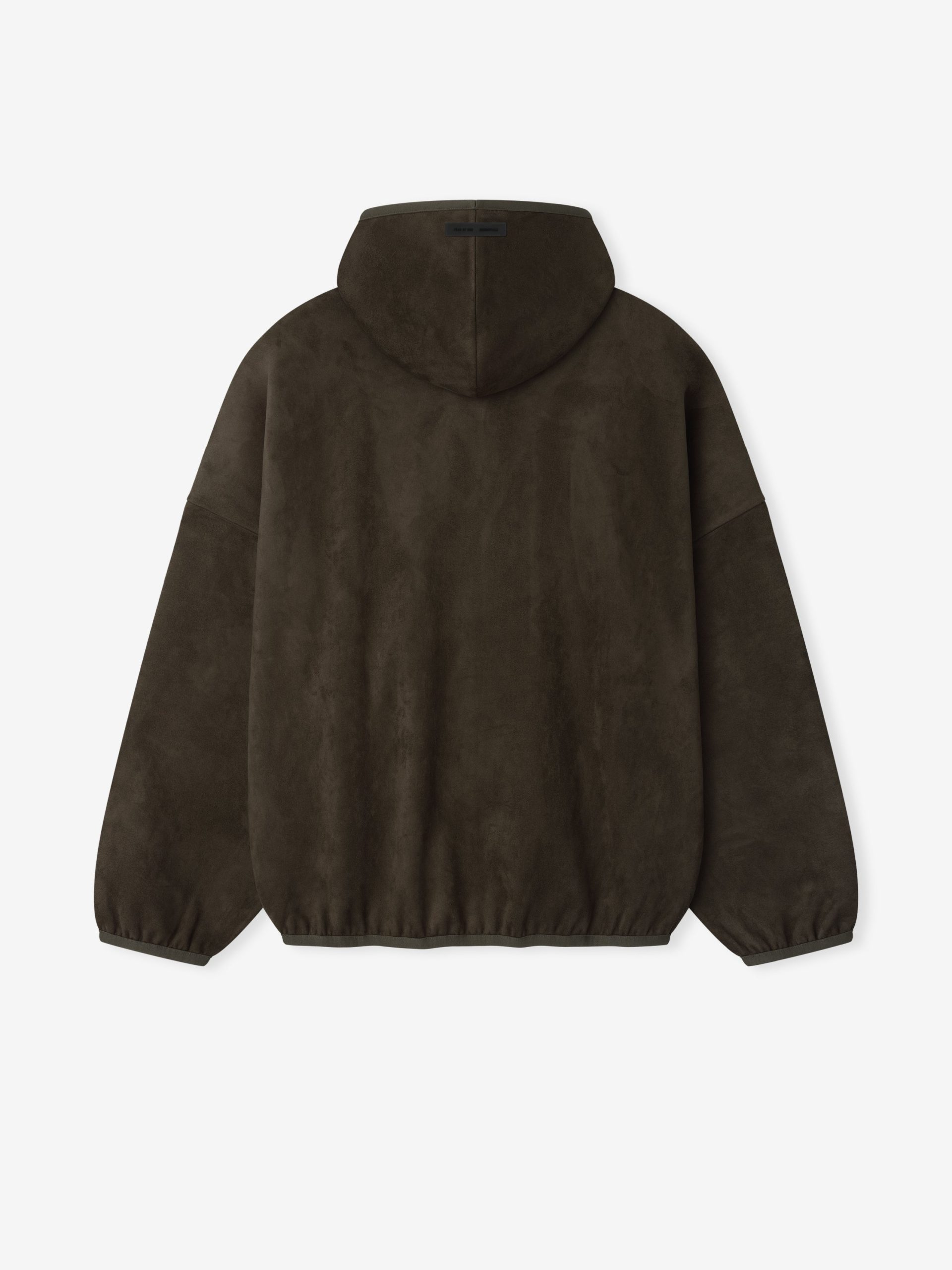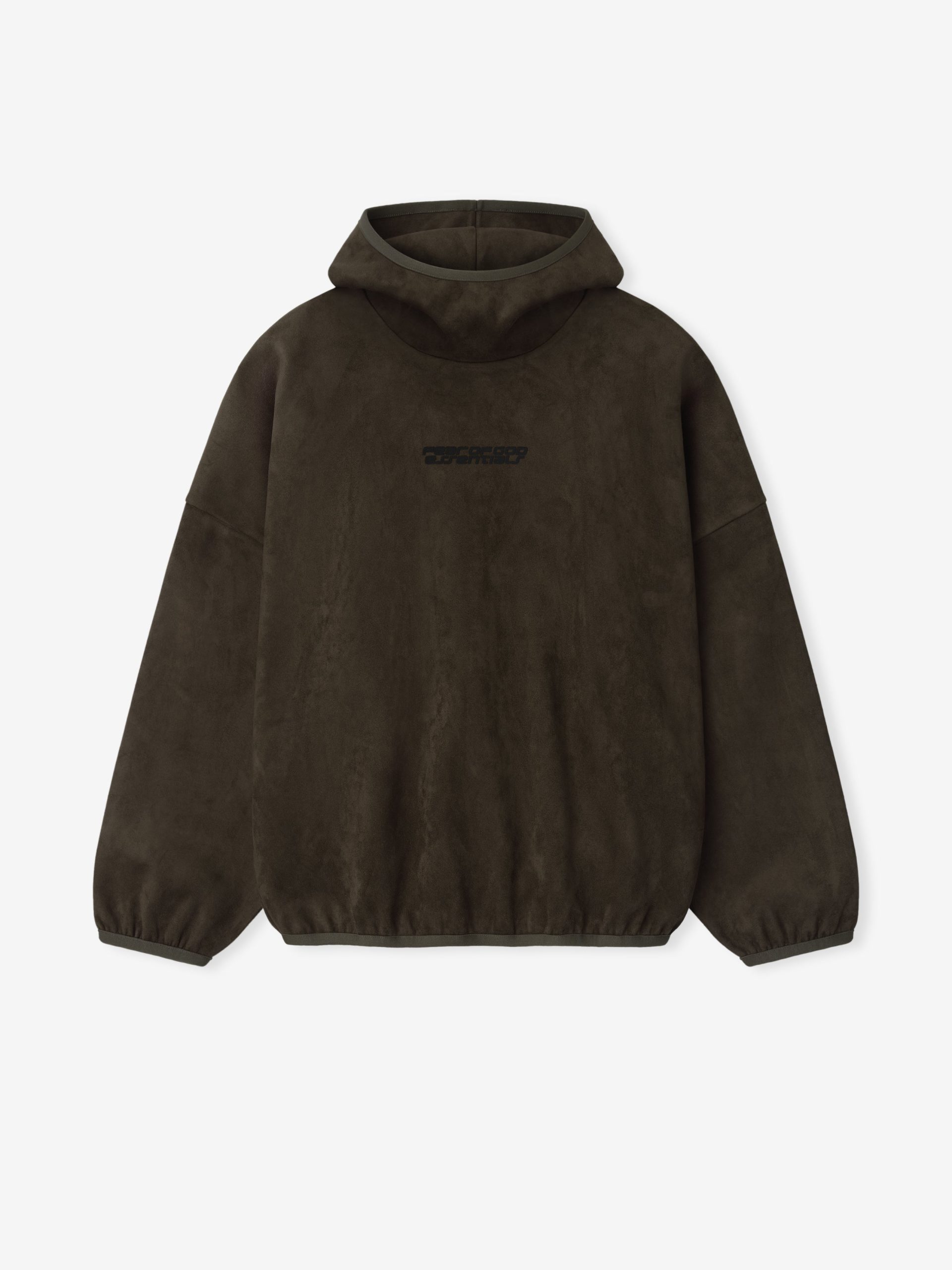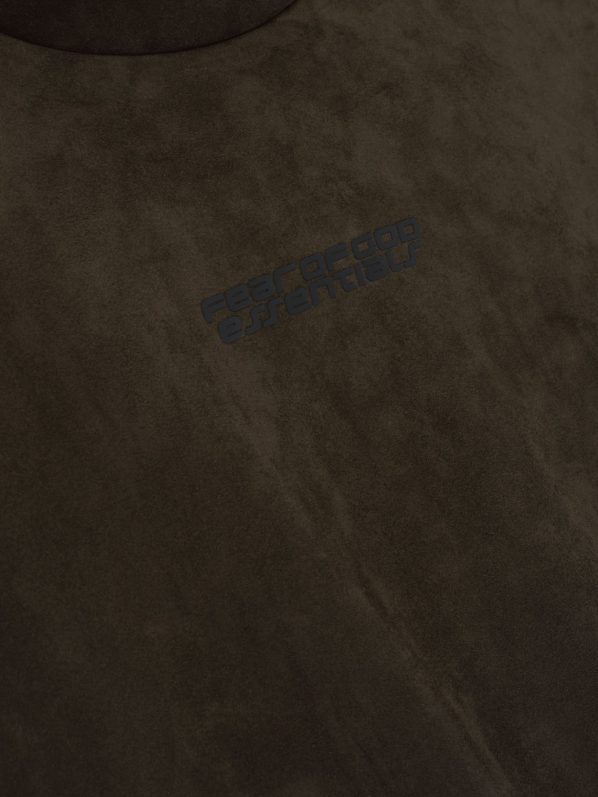 The Modern hoodie is crafted from bonded suede fleece. offering a plush. suede-like hand feel that complements the modern fit with a wider oversized silhouette. The piece is detailed with a HD-printed Fear of God Essentials lockup on the front. while finishing touches include elasticated piping at the cuffs. and waist hem. A Fear of God Essentials rubberized label stitched on the hood.