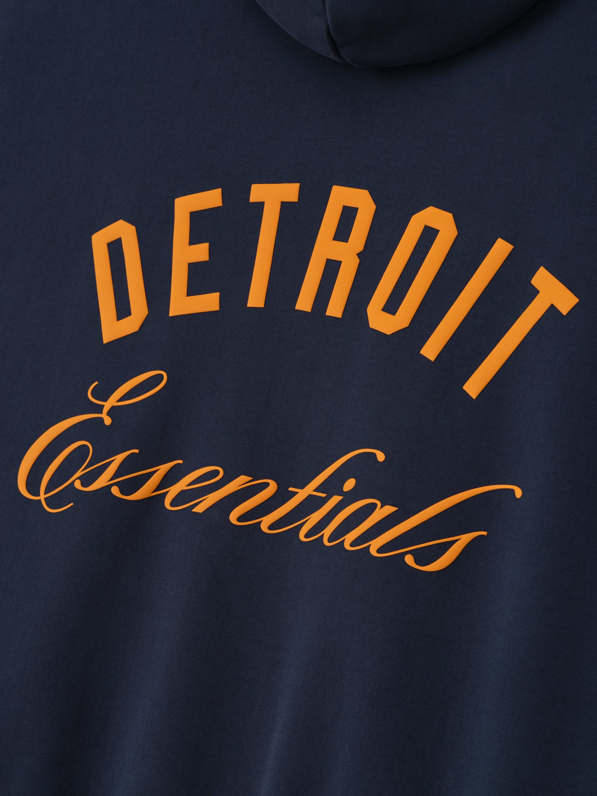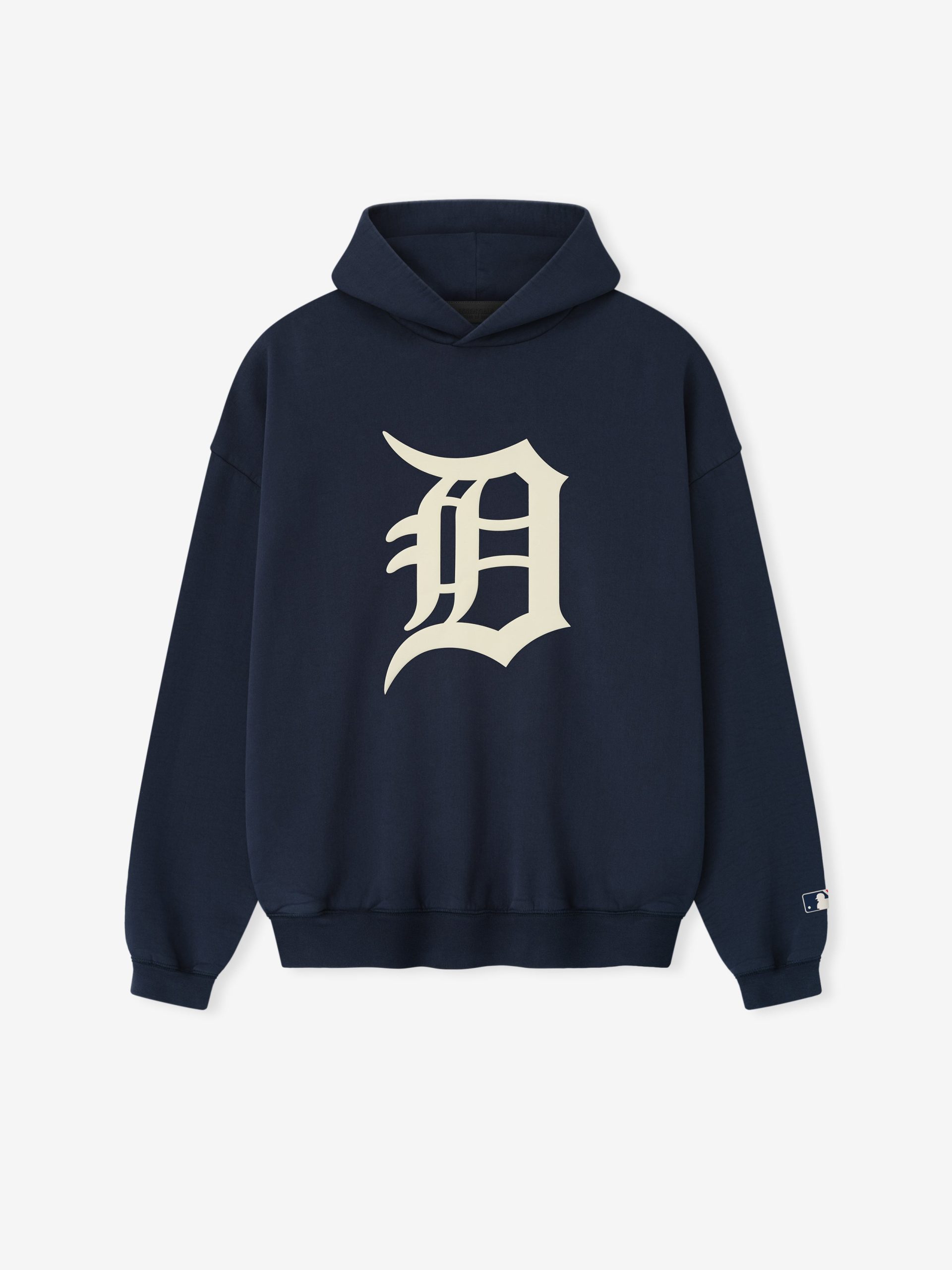 The Tigers Sport Hoodie is crafted from pigment-dyed. heavyweight 520gsm cotton fleece. delivering a faded vintage feel and a sense of sports nostalgia. Designed in a relaxed Sport fit. the front features the iconic Detroit Tigers logo in a HD print. while the back showcases an Detroit Essentials script lockup. Additional details include a MLB logo on the sleeve. side pockets. and rib-knit cuffs and waist hem. The look is finished with the signature rubberized Fear of God Essentials label at the hood.
