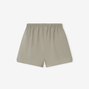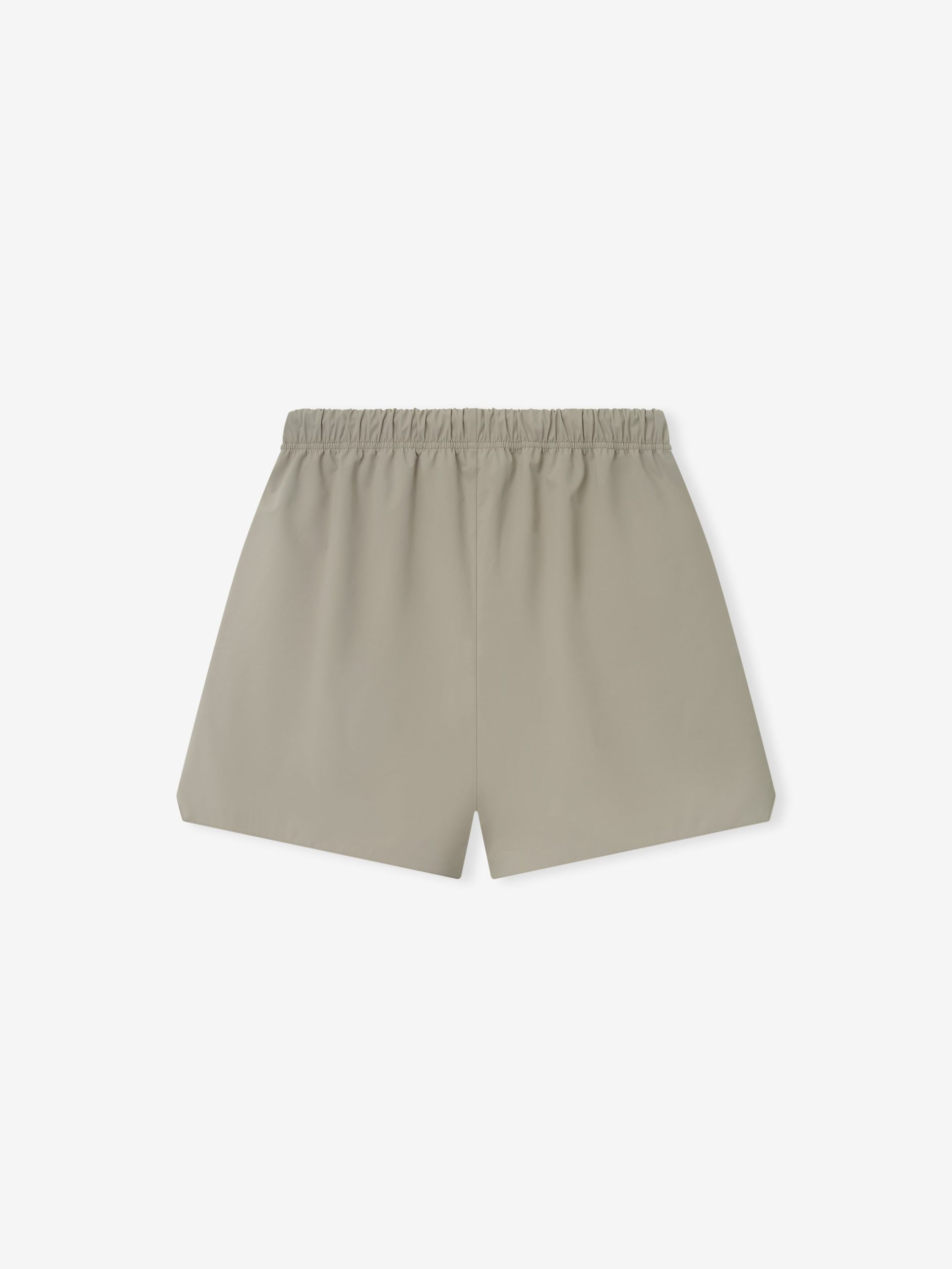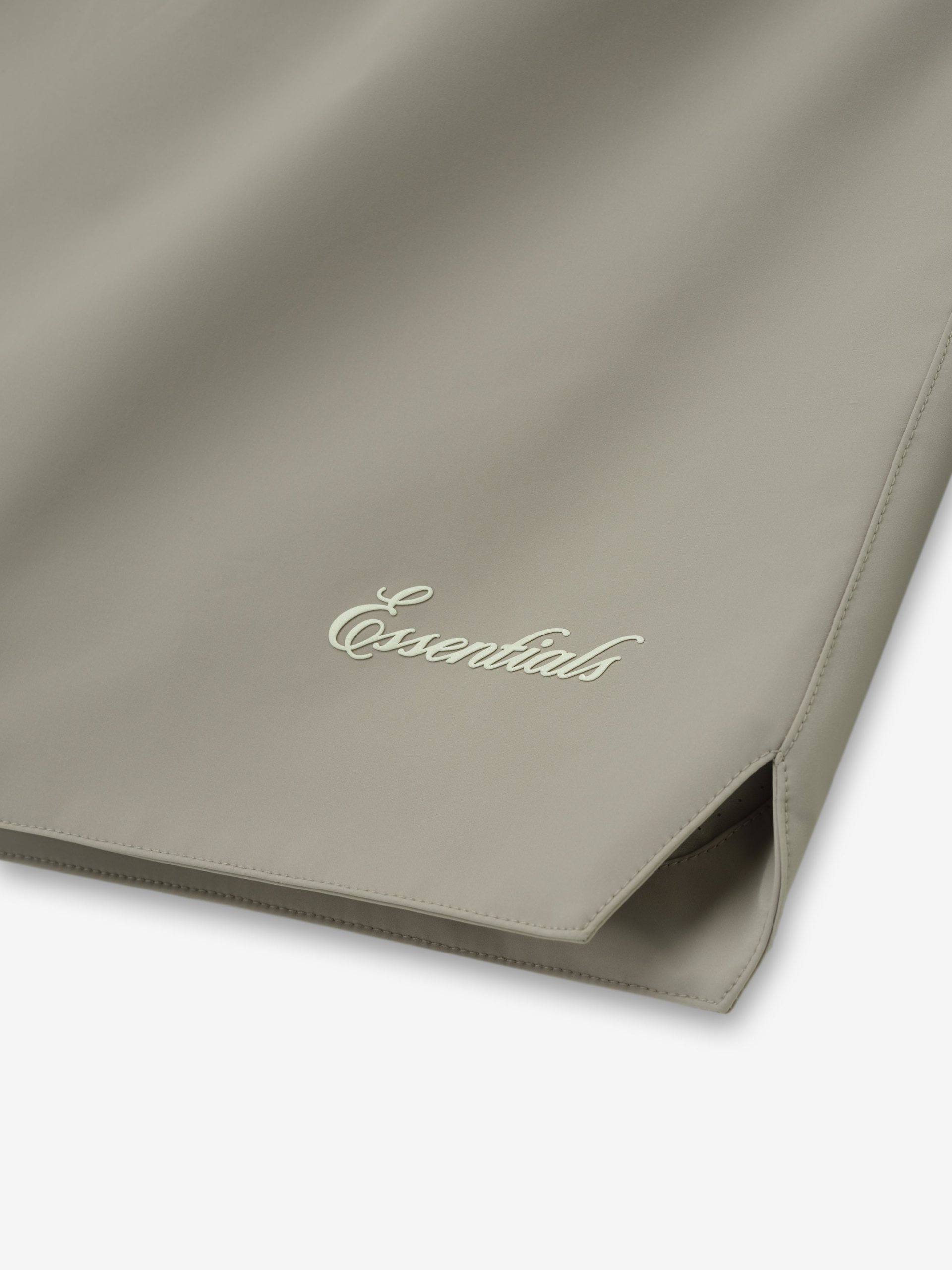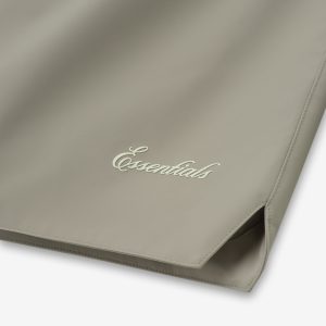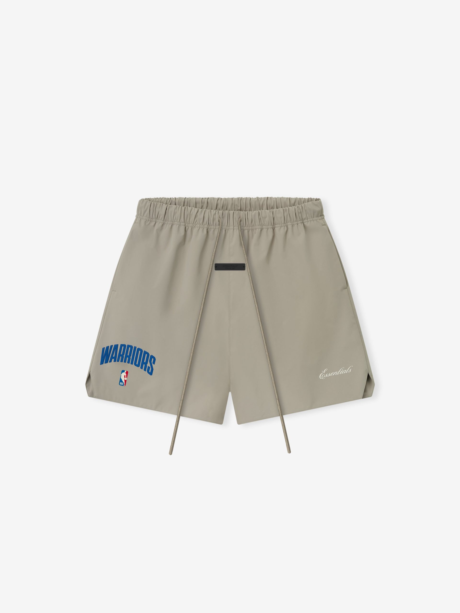 The Warriors Classic Short is made from a stretch-woven fabric and finished with a full mesh liner. delivering breathable comfort within a timeless athletic-fit silhouette. A WARRIORS NBA logo lockup are branded on leg and script Essentials print complements the other. Additional details include an encased elastic waistband with elongated drawstrings. side pockets. A Fear of God Essentials rubberized label is stitched on the center front.