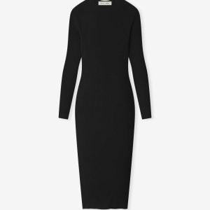 Womens Rib Long Sleeve Dress