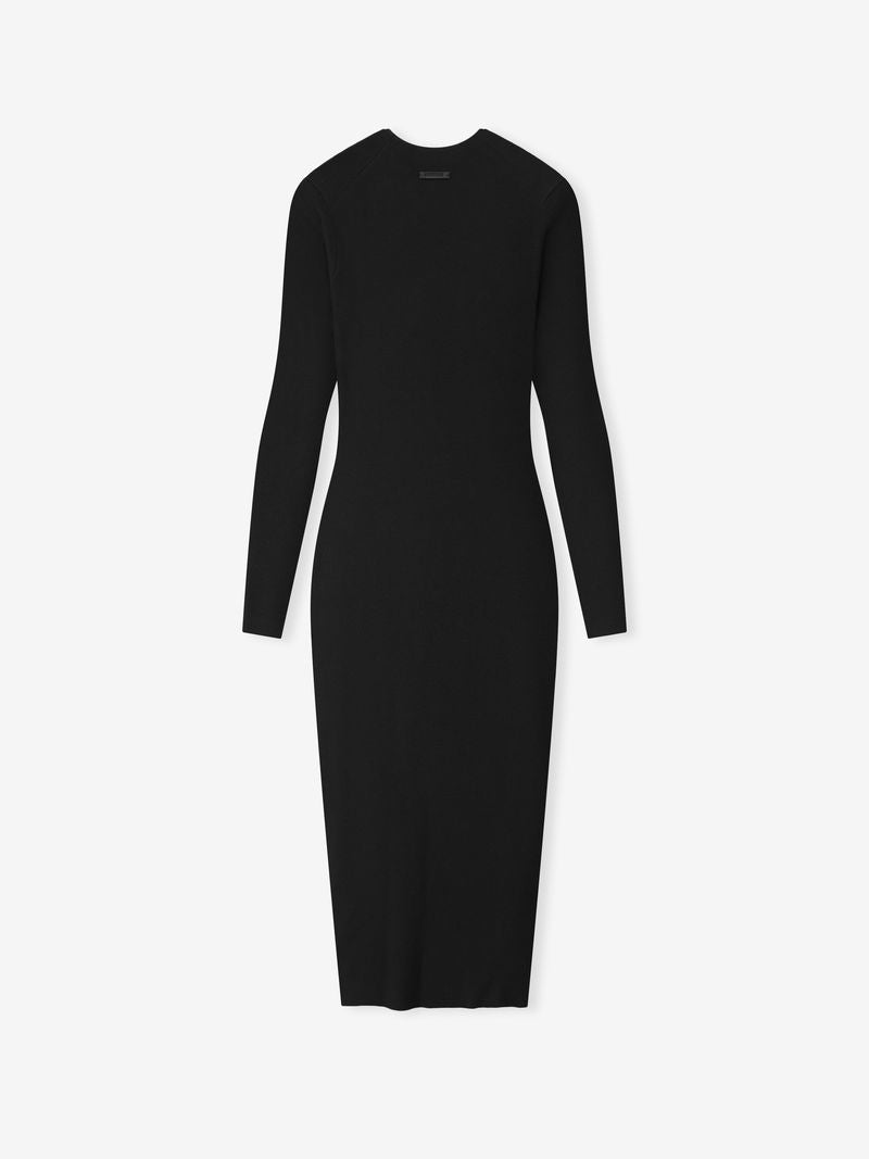 The Women’s Rib Long Sleeve Dress is crafted from a soft poly-nylon rib knit. providing stretch comfort and subtle textural dimension. Designed to hug the body. the ankle-length silhouette features a rib-knit neckline. long sleeves. and a Fear of God Essentials label positioned at the back.