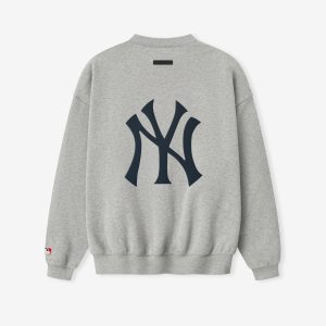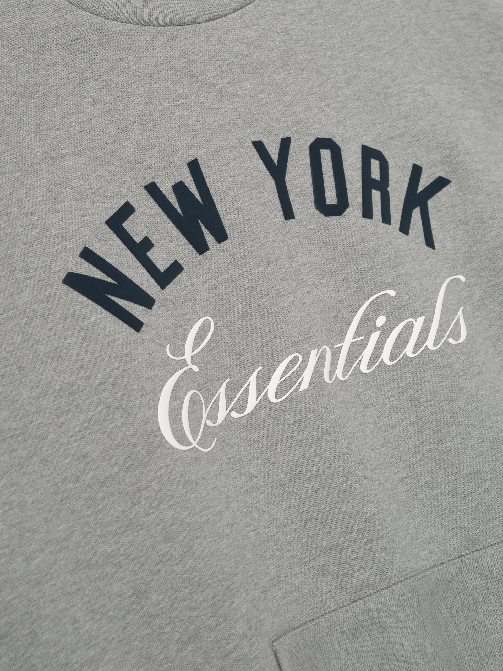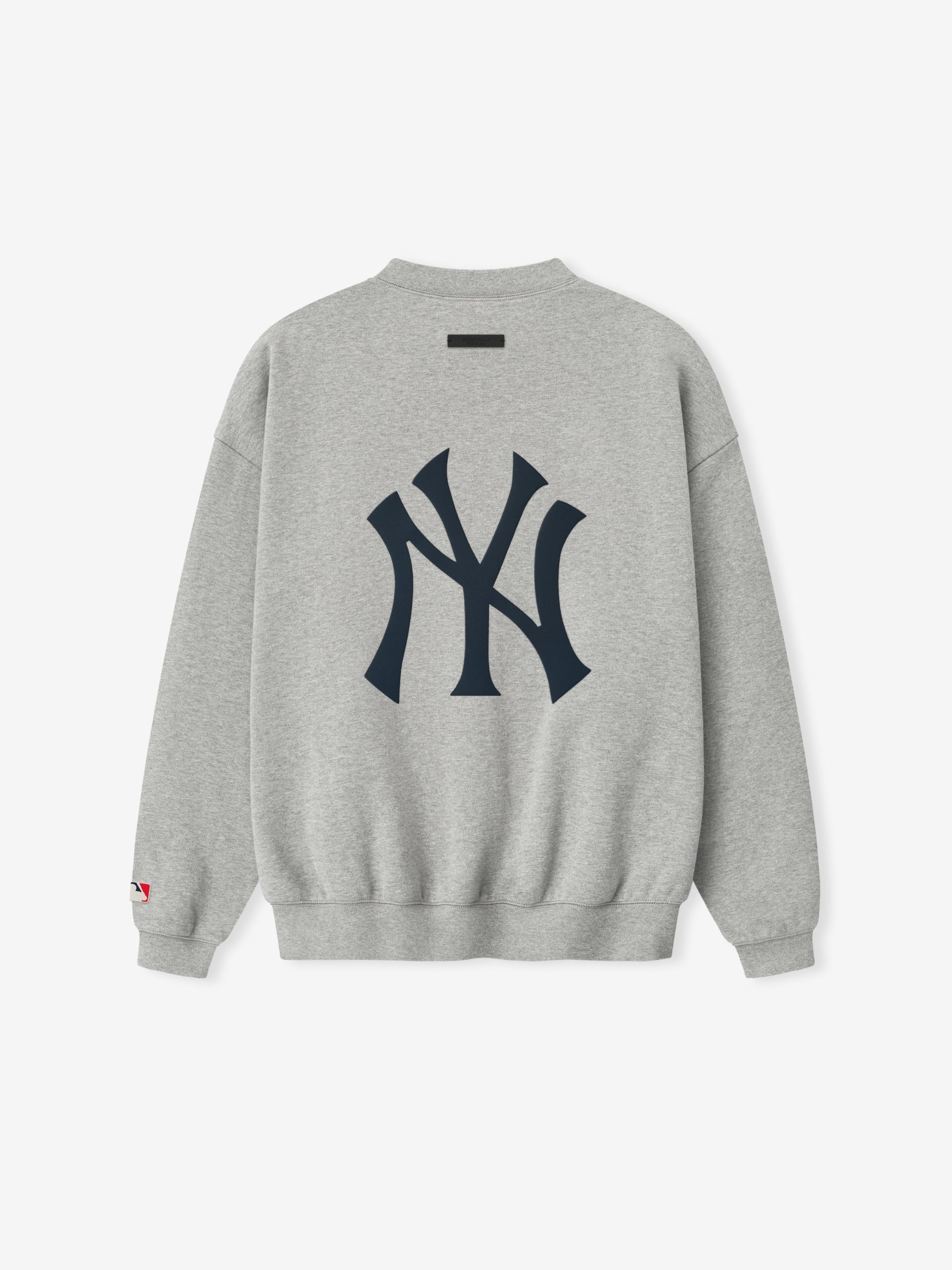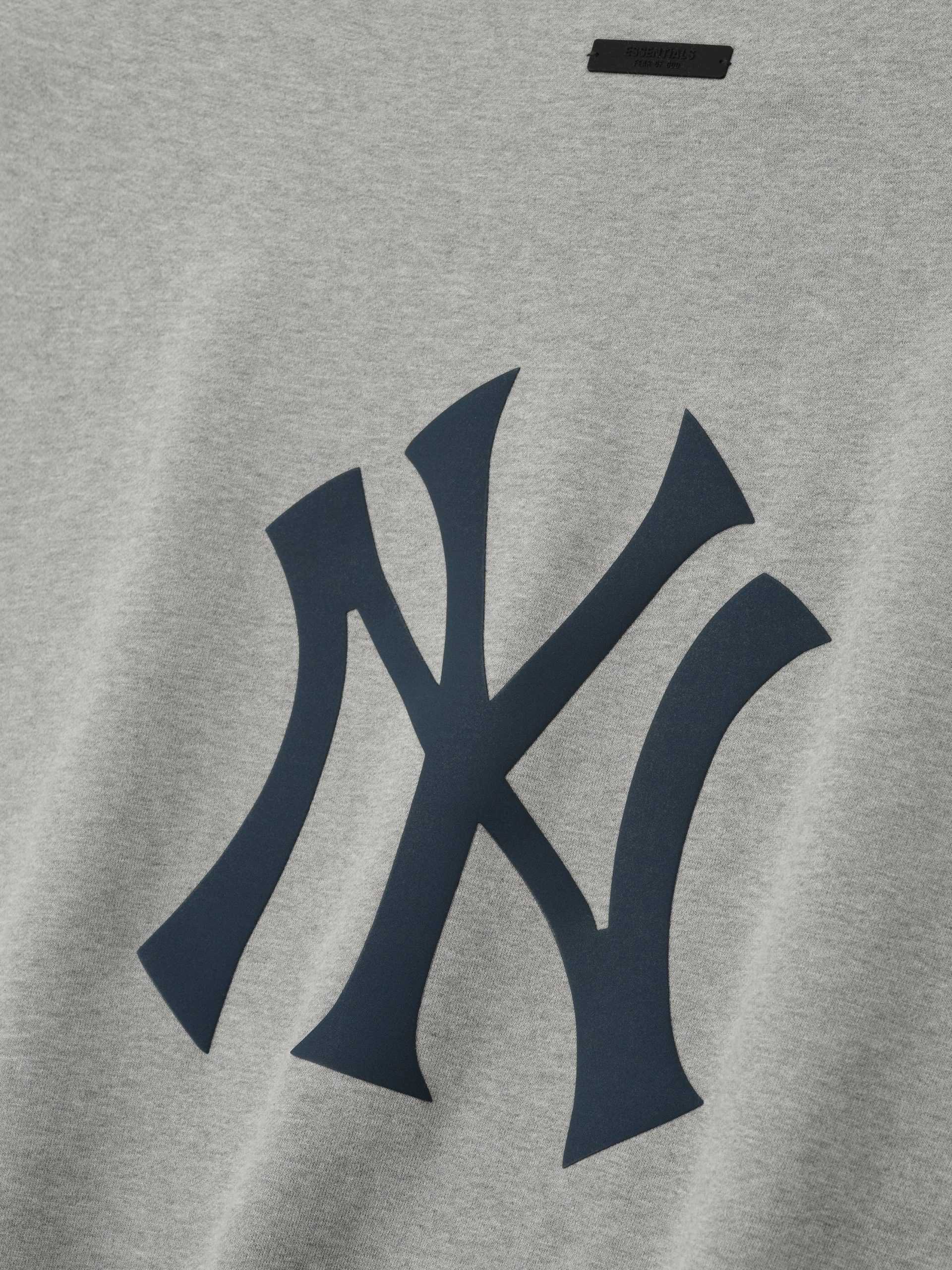 The Yankees Sport Crewneck is crafted from a heavy 480gsm fleece. offering an elevated balance of softness. structure. and lasting comfort. Designed in a relaxed Sport fit. the front features a New York Essentials lockup. while the back showcases an HD-printed New York Yankees logo. Additional details include an MLB logo on the sleeve. kangaroo pocket. and rib-knit collar. cuffs and waist hem. The look is finished with the signature Fear of God Essentials label at the back collar.